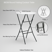 The 80CM Round Cocktail Table offers the perfect balance of style, stability, and convenience—ideal for receptions, cocktail parties, cafés, terraces, and outdoor gatherings. With a spacious 80cm HDPE round tabletop and reinforced steel frame, this table provides extra standing room while remaining easy to fold, carry, and store. Designed for indoor and outdoor use, it brings versatility and reliability to any event.