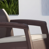 2-Seater Outdoor Sofa Set – Dark Brown Plastic Chairs with Beige Seat Cushions & Coffee Table, Weather-Resistant Patio & Balcony Furniture with Built-In Cup Holders